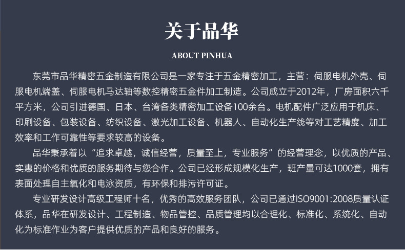 專注數控精密五金件的研發製造主營伺服電機外(wài)殼、伺服電機端蓋、伺服電機軸等定製(zhì)生產(chǎn)
